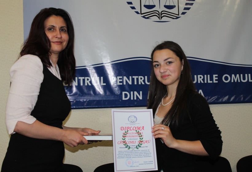 The Parliamentary Advocate awarded all children with special diplomas and books - „100 de scriitori notorii ai lumii”. The participants were awarded during a festive solemn ceremonies "The last bell". Catalina Negru received her diploma and the book at the Center for Human Rights.