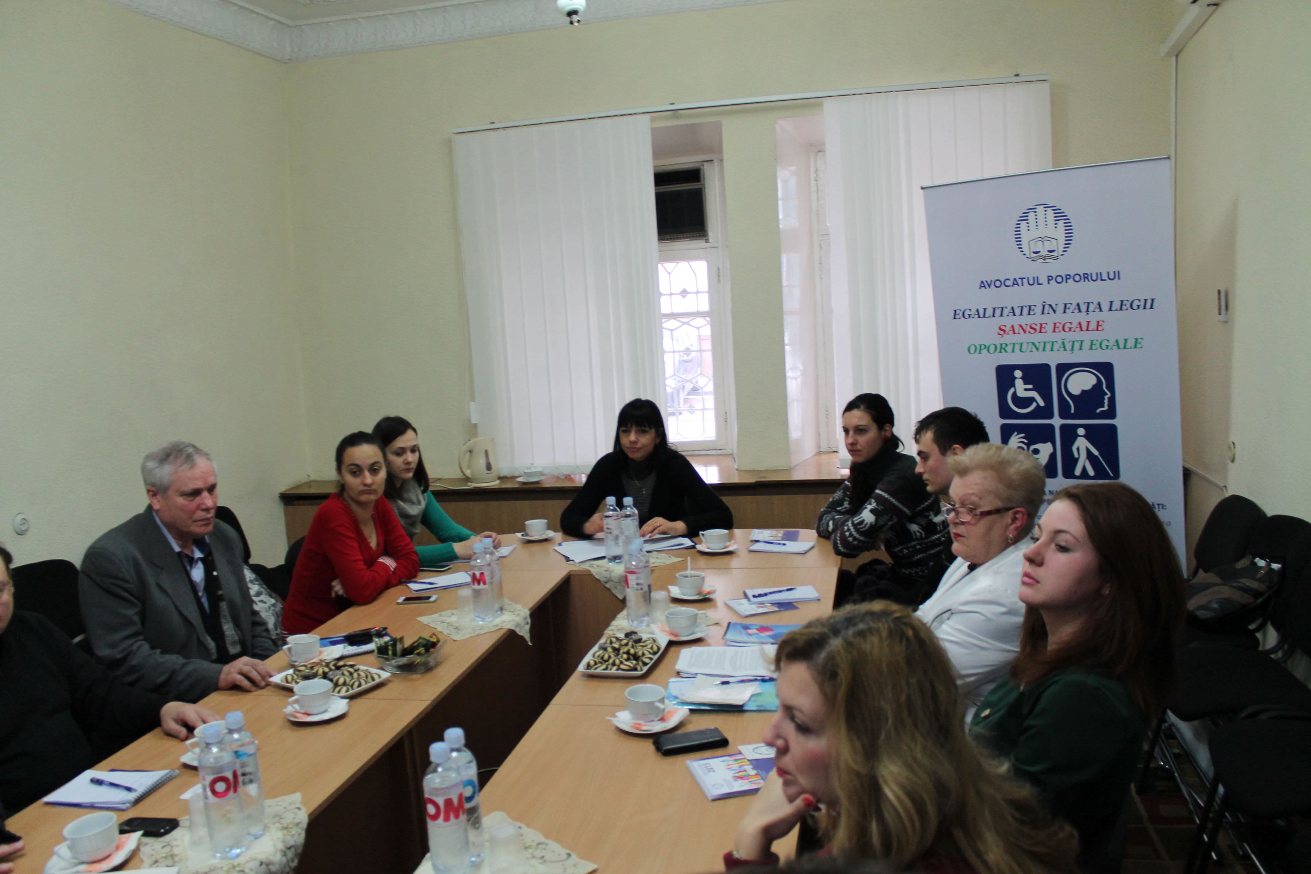The meeting was attended by representatives of the Associations of the Deaf people, Association of Blind people, Union of organizations of peoples with disabilities, Association for Rehabilitation of persons with disabilities „Humanitas”, CMC „Suflet şi Sănătate”. The discussions were attended by representatives from the Ministry of Labor, Social Protection and Family, Ministry of Education, Republican Psycho-Pedagogical Assistance Center.