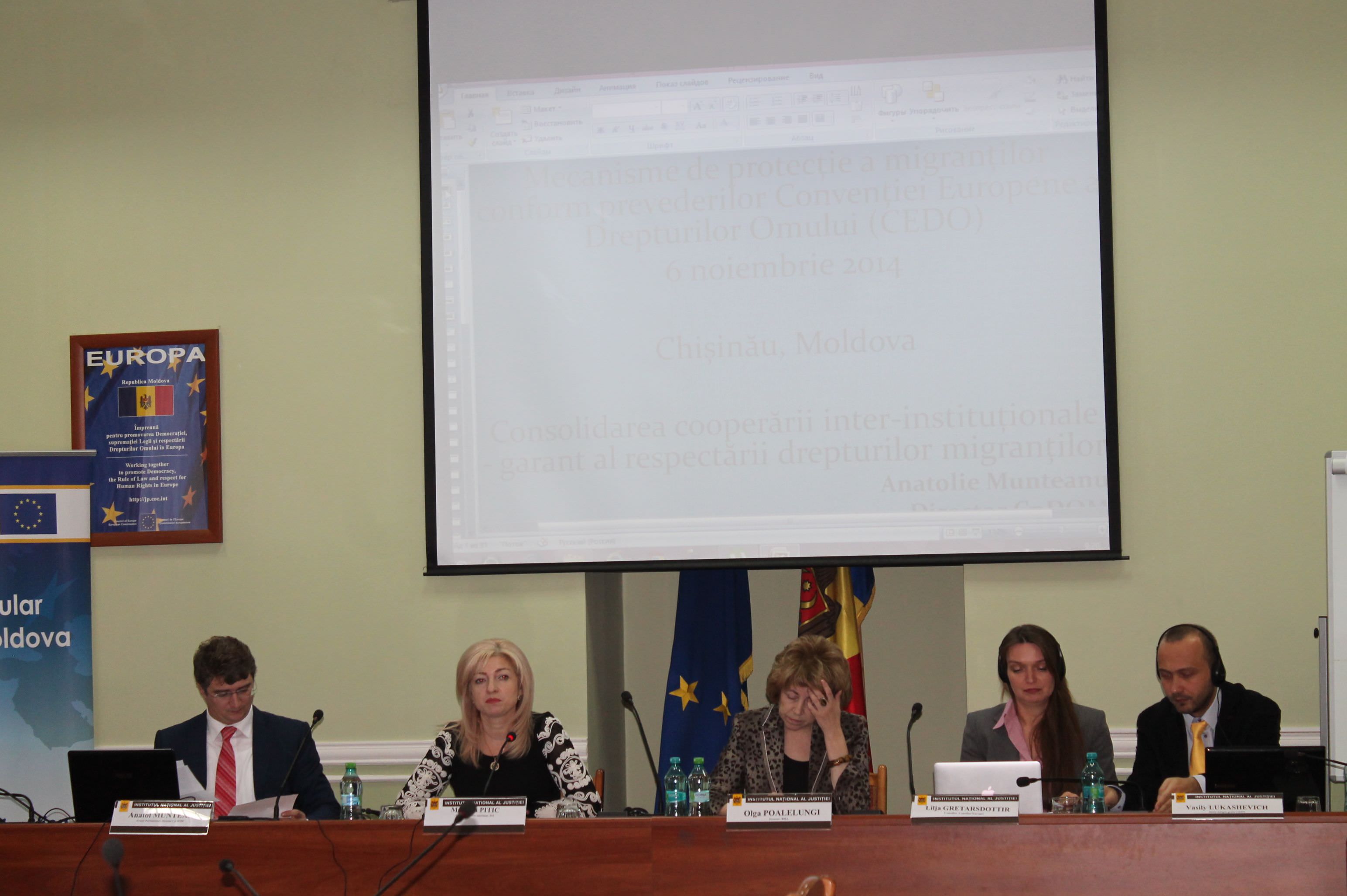 The director of the Center for Human Rights of Moldova, Anatolie Munteanu, adviser of Parliamentary Advocate Svetlana Rusu and the consultant Gheorghe Bosîi, participated on November 6, 2014 on the round table "Mechanisms of migrants protection in accordance with standards of the European Convention of Human Rights (ECHR)." The event was organized by International Centre for Migration Policy Development in collaboration with the Center for Human Rights of Moldova, National Justice Institute and EU Delegation ]n the Republic of Moldova.
