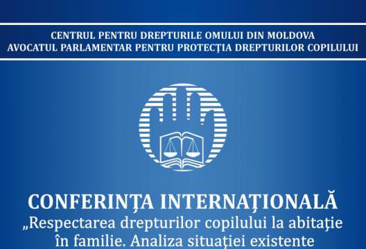 Pe 4 octombrie, Centrul pentru Drepturile Omului din Republica Moldova, avocatul parlamentar pentru drepturile copilului Tamara Plămădeală organizează o conferinţă internaţională la tema: “Respectarea dreptului copilului la abitaţie în familie. Analiza situaţiei existente în Republica Moldova prin prisma practicilor pozitive ale altor ţări”.