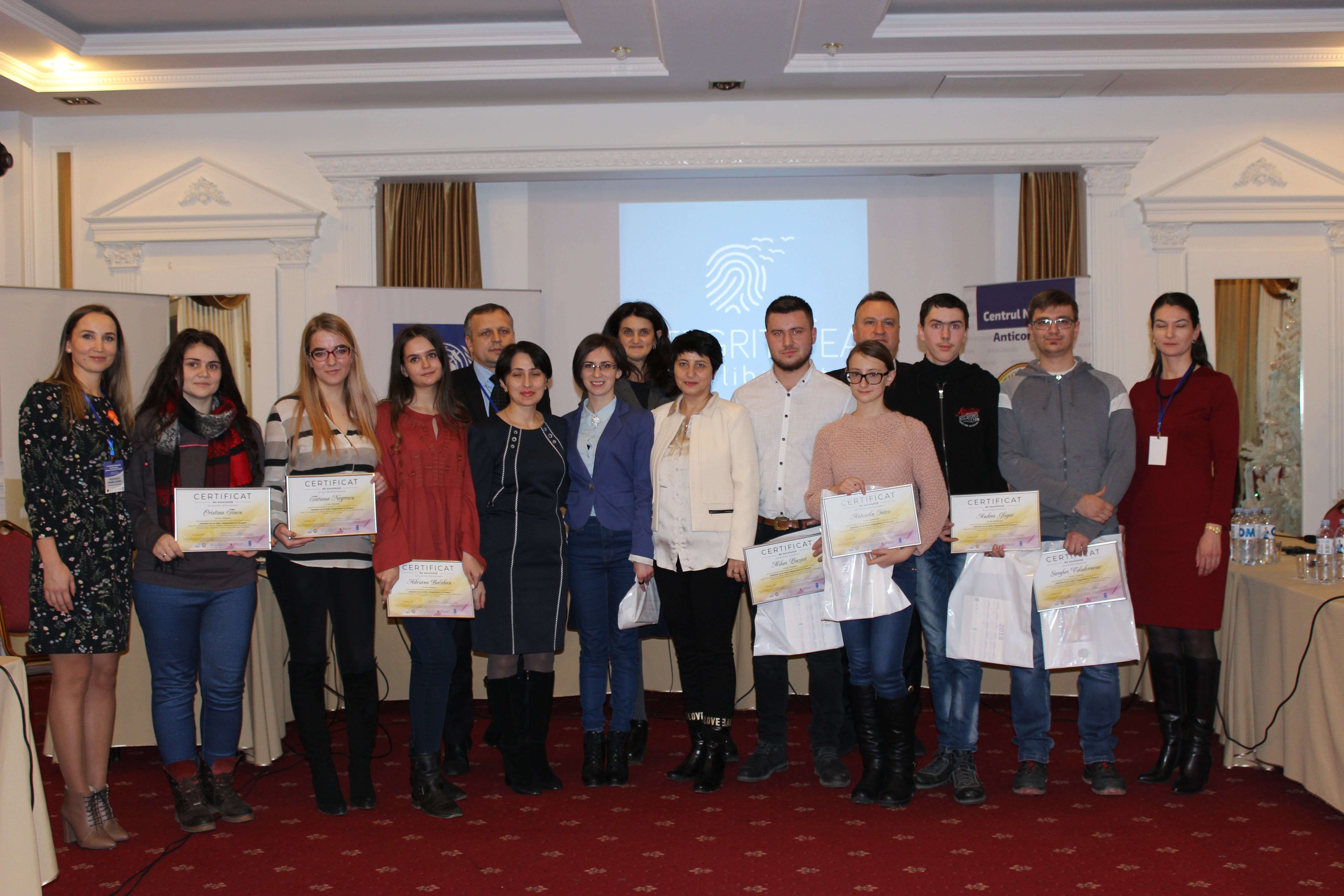 Conferința a culminat cu premierea câștigătorilor concursului de desene „Talentul nu ia mită”, ale căror lucrări s-au regăsit în Calendarul Integrității – 2018”.