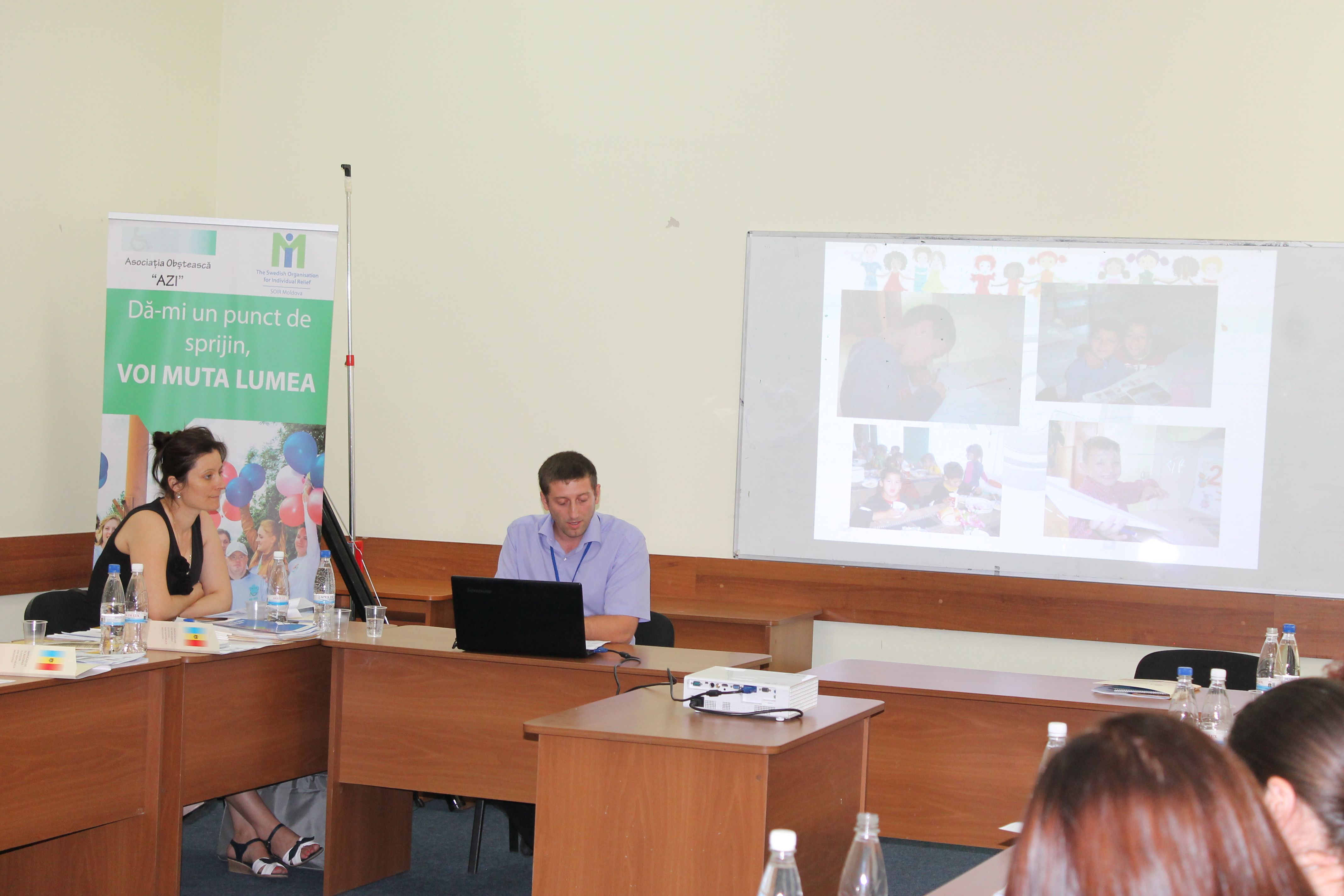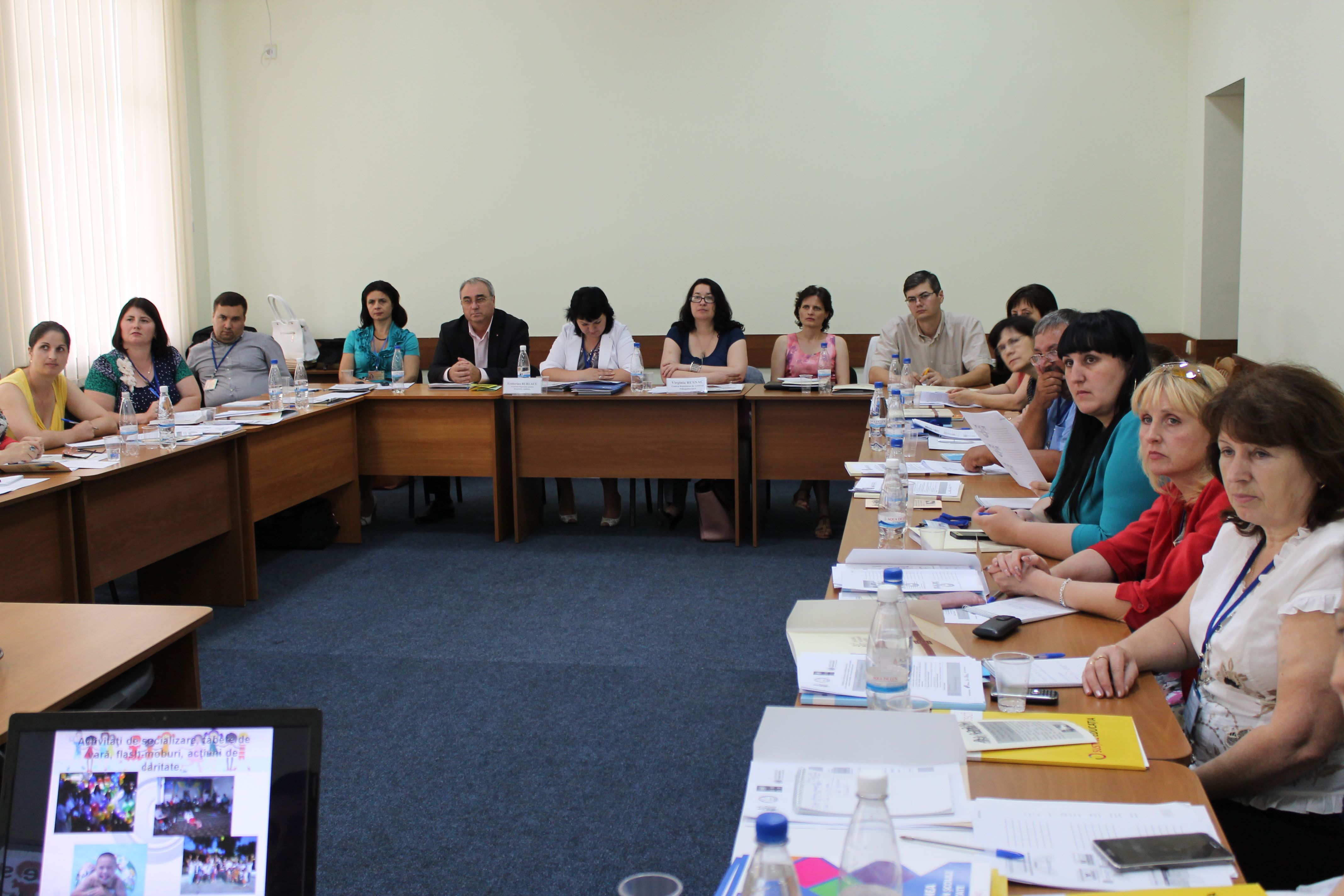 На рабочей встрече «Социальная интеграция детей-инвалидов», проводимой доктором психологических наук Виржинией Руснак, обсуждались вопросы ретроспективы интеграции в сфере образования в Республике Молдова, доступа детей сособыми потребностями к образованию; реформарезиденциальных учреждений для детей с серьезными физическими и ментальными расстройствами, модель инклюзивного образования, внедренная в систему образования Республики Молдова, удачная практика образовательной интеграции, интеграция детей-инвалидов в общую образовательную среду. Данные темы были затронуты в выступлениях директора Республиканского центра психопедагогической помощи Виржинии Руснак; специалиста по инклюзивному образованию общественной организации «Copil Comunitate Familie Moldova» Виорики Кожокару; менеджера проекта ассоциации «LumosMoldova» Галины Булат; Нику Чокан из Ассоциации «Keystone Human Services International Moldova»; исполнительного директора общественной организации из Криулень «Femeia si Copilul – Protectie si Sprijin» Виктории Секу; исполнительного директора общественной организации из Кагула «Azi» Татьяны Середенко.