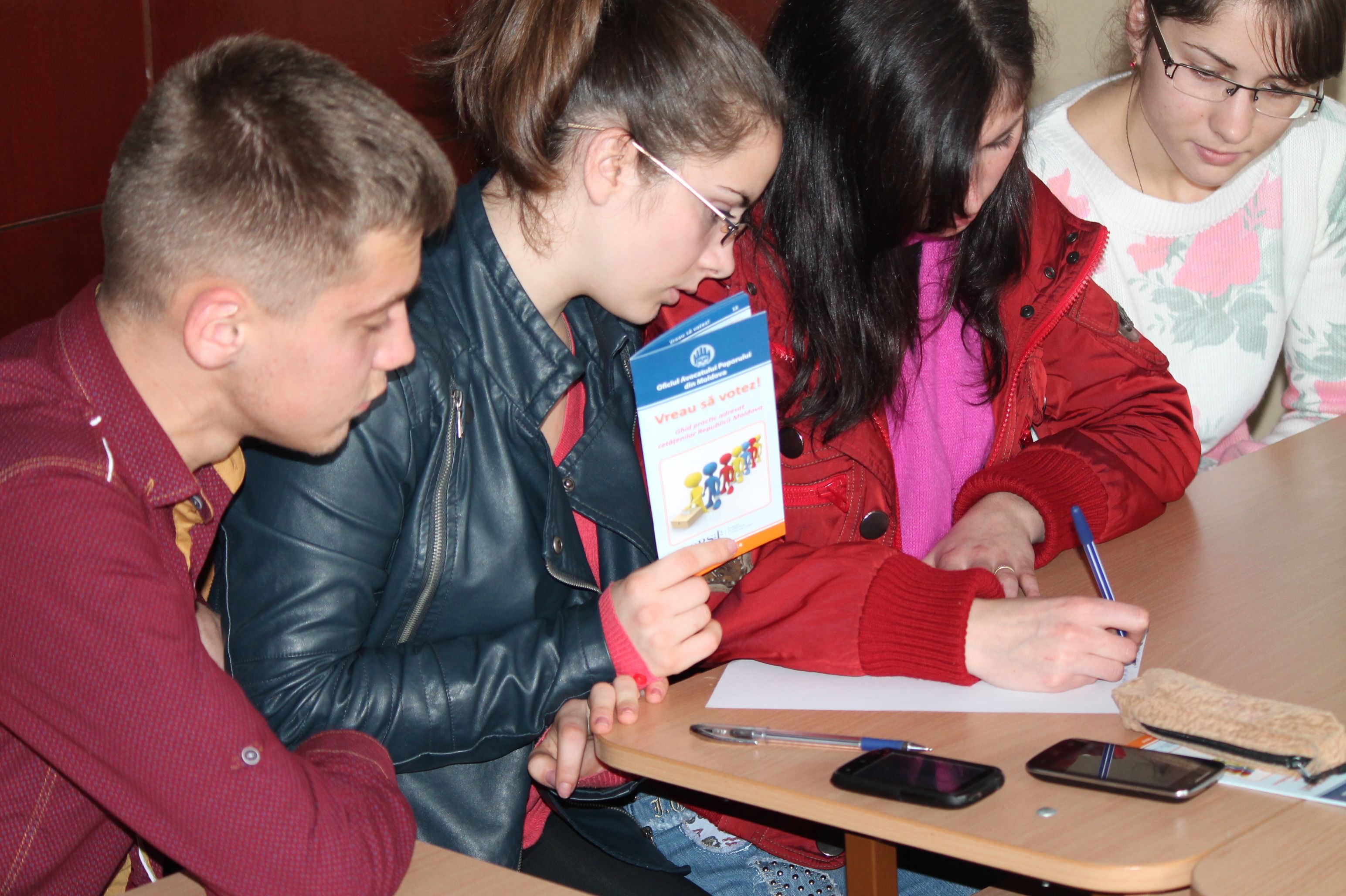 12 ноября 2014г. Главный консультант парламентского адвоката Каролина Казачук провела  занятие с учащимися двенадцатого класса Теоретического Лицея «Михай Еминеску » из Фэлешть, данное мероприятие проведено в рамках Кампании «Я впервые  участвую  в выборах» , в ходе проекта Ассоциации Независимой Прессы  при поддержке Совета Европы.