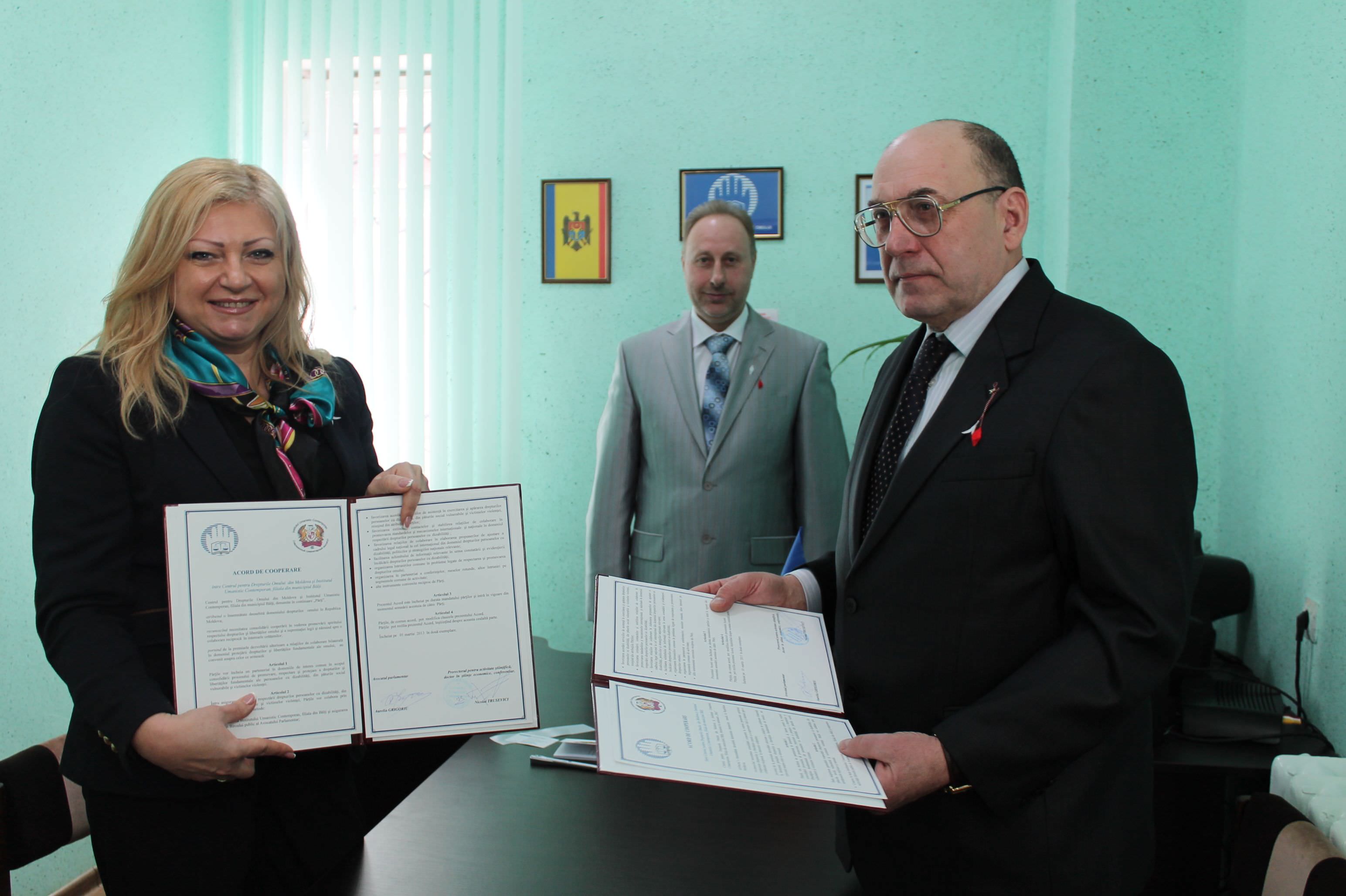 В ходе открытия омбудсмен Аурелия Григориу и проректор по научной работе СИГН, доктор экономических наук, профессор, Николай Трусевич подписали соглашение о сотрудничестве между Центром по Правам Человека и Современным Институтом Гуманитарных Наук.