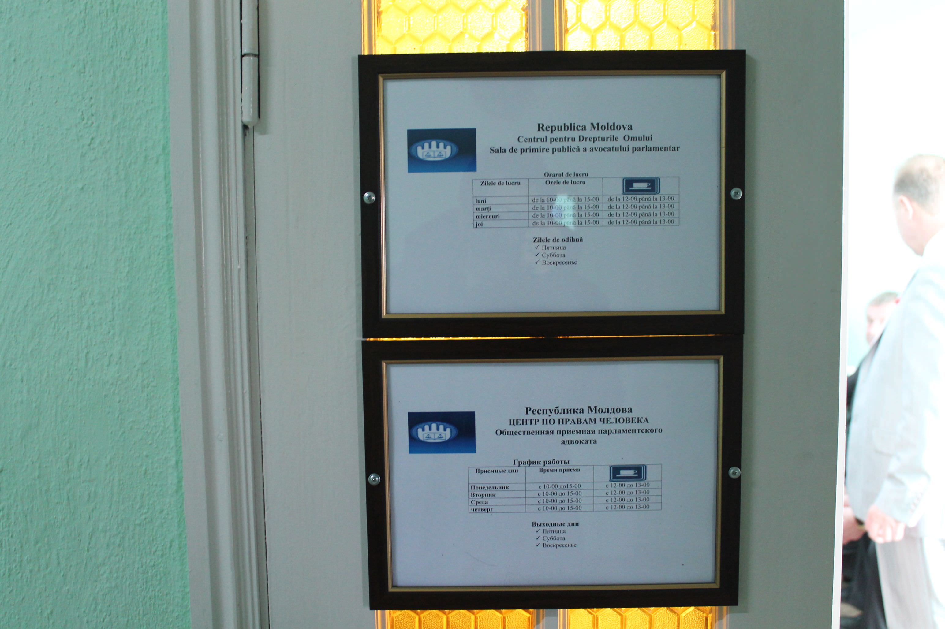 Приемную открыли Михаил Дидык, директор Ассоциации по защите прав детей "Дети третьего тысячелетия" и директор фонда "Эхо Чернобыля" Наталья Хасан, председатель Республиканского центра реабилитации и социальной интеграции (CRIS ), где 22 мая 2012 года в Кишиневе была открыта первая общественная приемная.